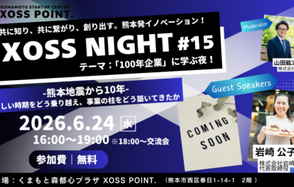 4月9日のオープニングイベントでは、大西一史熊本市長や起業家、大学教授らが、起業家支援についての意見を交わすパネルディスカッションも開催。新たな事業にチャレンジする人が集い、学び、支え合うことで、XOSS POINT.が素晴らしい施設になることを誓い本格的なスタートを迎えました。