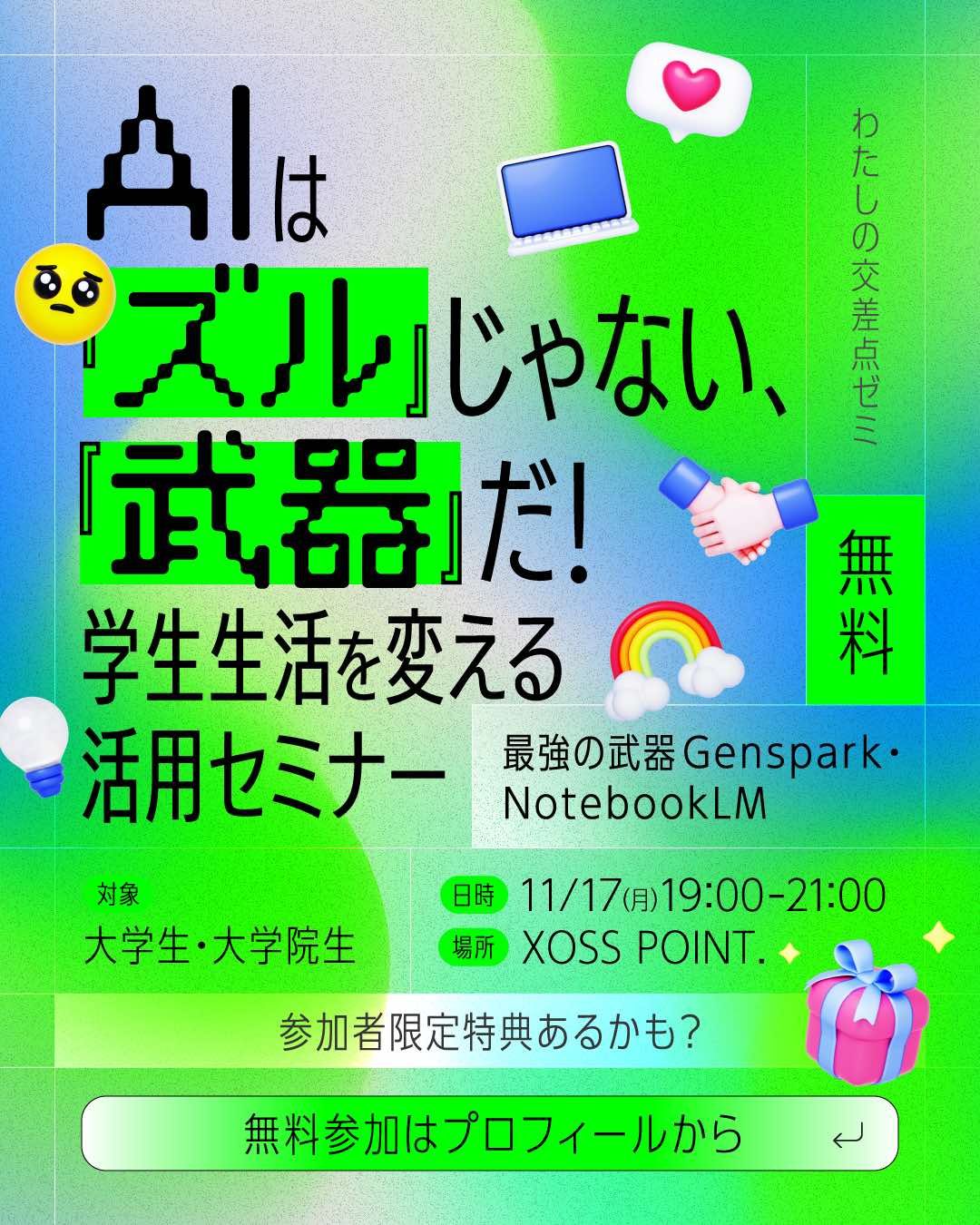 AIはズルじゃない、武器だ!学生生活を変える活用セミナー(R7下期採択プログラム)