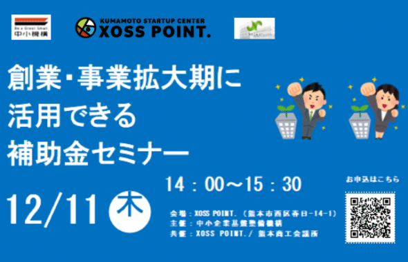 くまもと森都心プラザ ビジネス支援施設 XOSS POINT.では、12月3日(水)18:00より