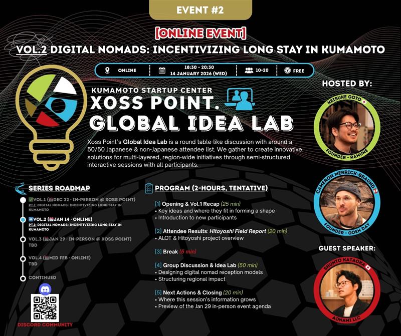 For Vol.2, we’re taking that energy online and expanding our reach across Kumamoto and beyond. Whether you’re joining for the first time or continuing from Vol.1, we’ve designed this session so everyone can jump right in. We’ll share highlights from our first event and dive deeper into the conversation.