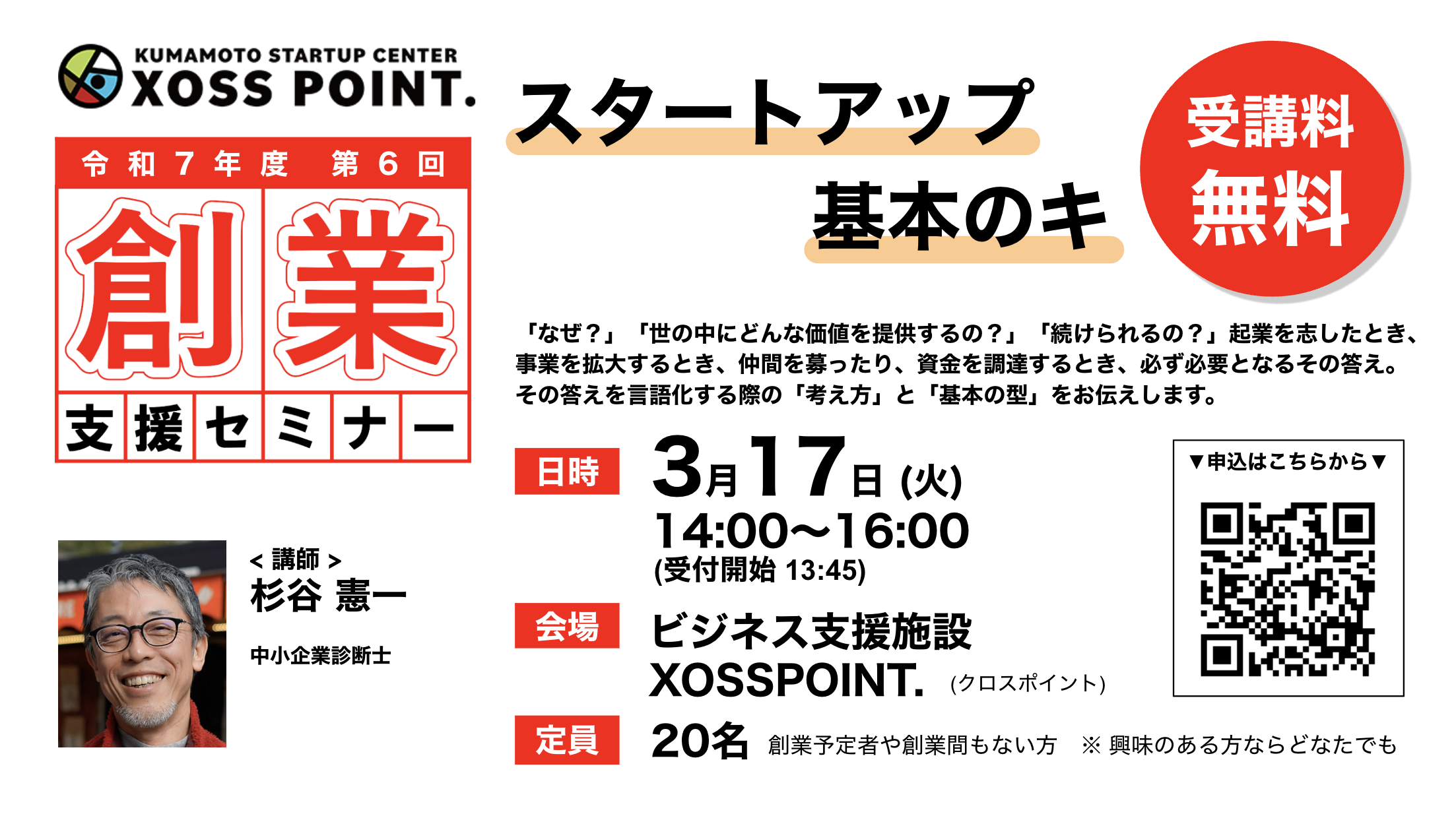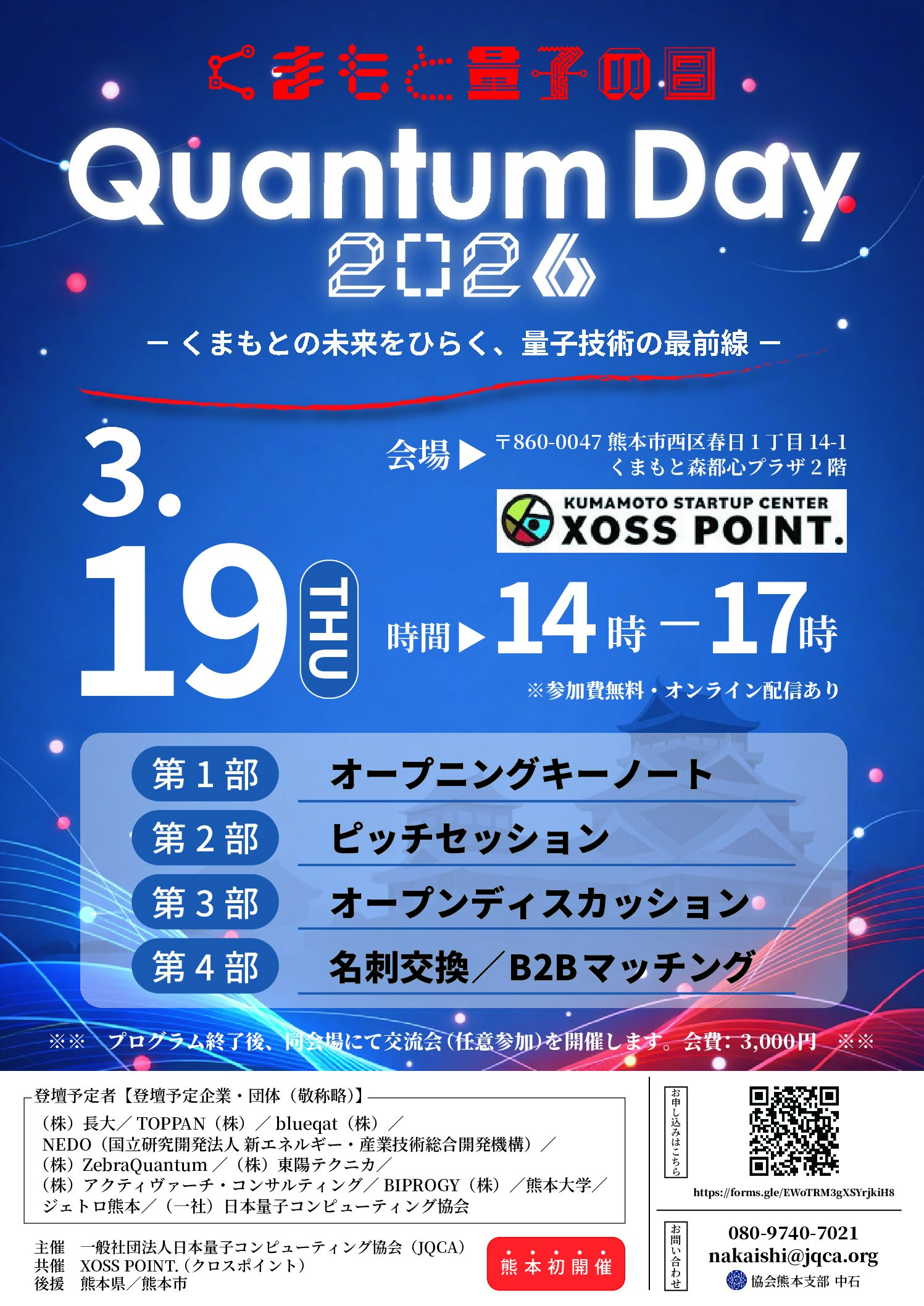お申し込み・問合せ先 : くまもと森都心プラザ2F ビジネス支援施設 XOSSPOINT.(担当:甲斐・林)