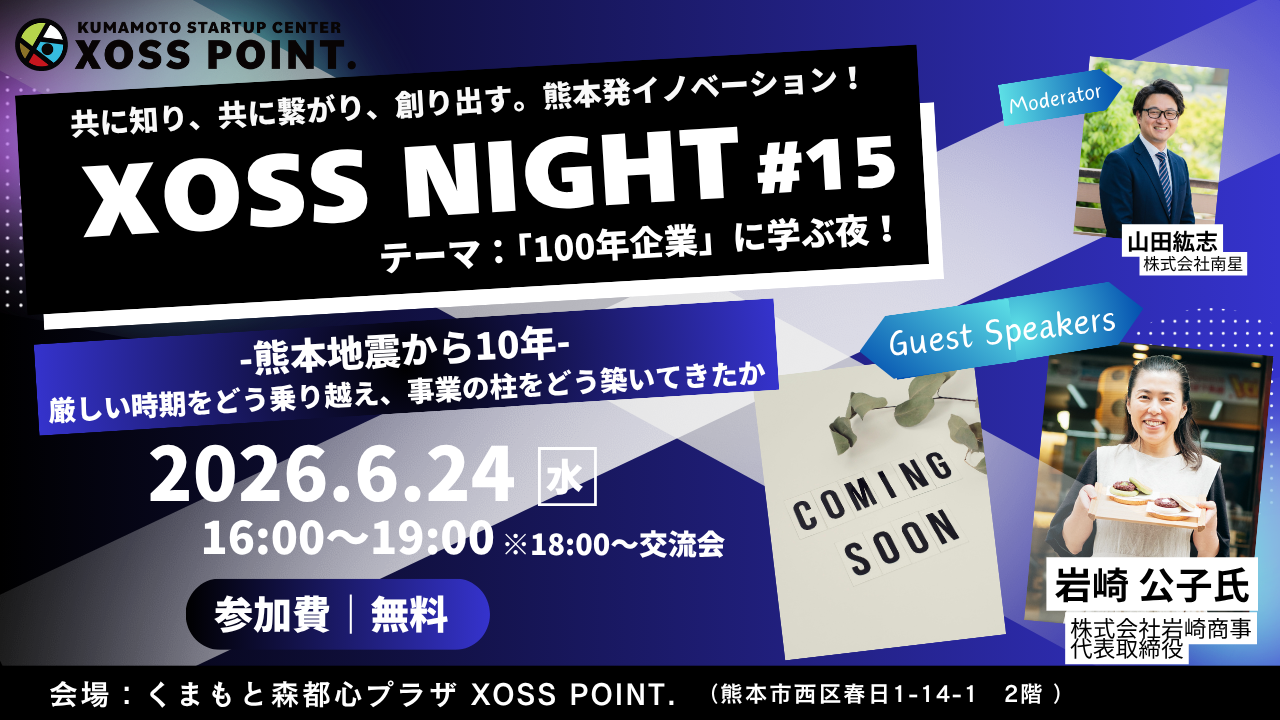 加えて、XOSSPOINT.という「起業‧創業のハブ」となる場所で開催することで、参加者同士の交流を通じたビジネスネットワークの構築と、地域経済の活性化にも寄与することを目指します。